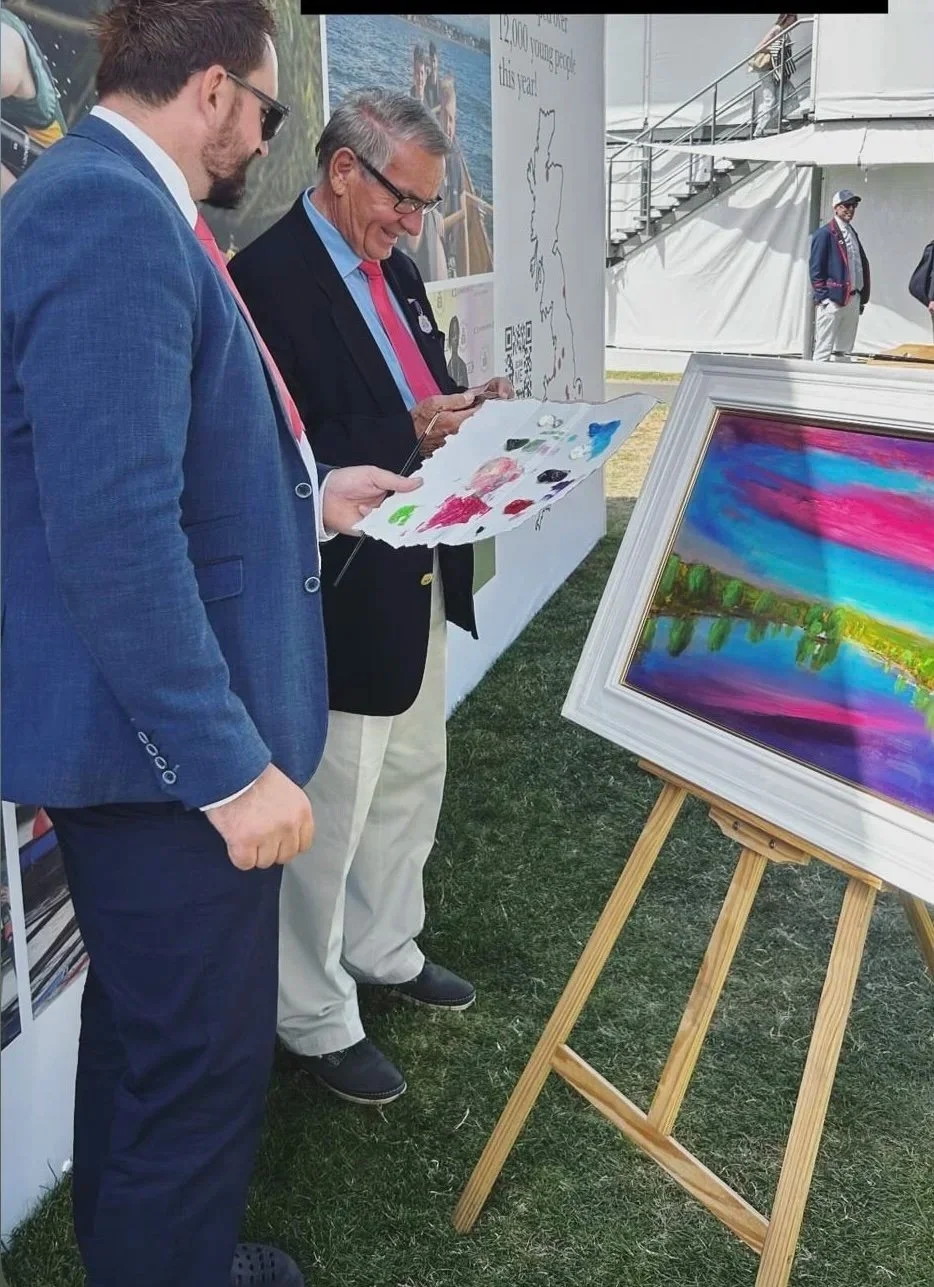 “It was a privilege to be invited to paint live in the Royal Stewards’ Enclosure at Henley Royal Regatta. It was also a pleasure to meet Jürgen Gröbler, one of Great Britain’s most successful Olympic rowing coaches, who is pictured here.”